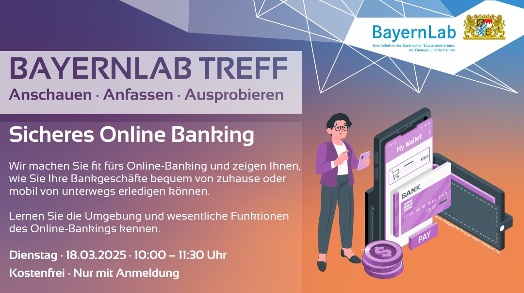 Das BayernLab Neustadt a.d. Aisch lädt am Dienstag, den 18. März 2025, um 10:00 Uhr zu einem kostenfreien Kurs über sicheres Online Banking ein.